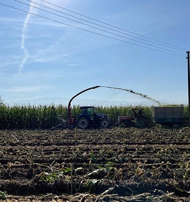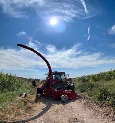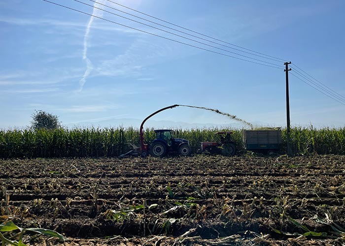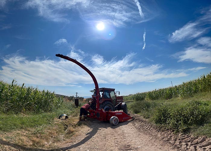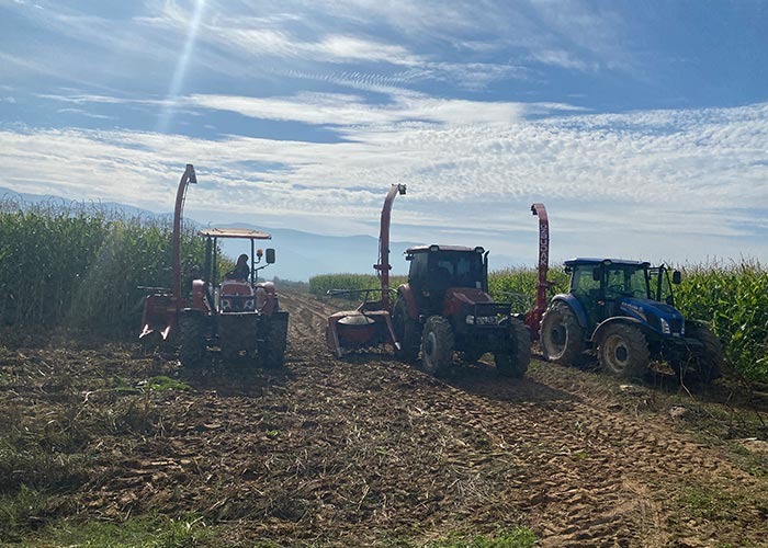 Traktör, silaj makinesi ve döber misir ot ürünleri.